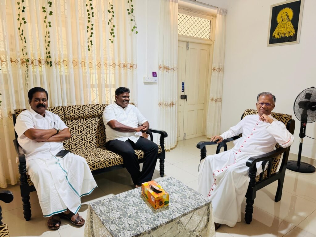 ​திருகோணமலை மாவட்டத்திற்கு விஜயம் செய்த இலங்கைத் தமிழ் அரசுக் கட்சியின் நாடாளுமன்ற உறுப்பினர் சிவஞானம் சிறீதரன் மற்றும் மேனாள் நாடாளுமன்ற உறுப்பினர் சார்ள்ஸ் நிர்மலநாதன் ஆகியோர், நேற்றைய தினம்  திருகோணமலை மறைமாவட்ட ஆயர் அதிவணக்கத்துக்குரிய பேரருட்தந்தை நோயல் இம்மானுவேல் (Rt. Rev. Dr. Christian Noel Emmanuel) ஆண்டகை மற்றும் தென்கயிலை ஆதீனத்தின் முதற்குரு தவத்திரு அகத்தியர் அடிகளார் ஆகியோரைச் சந்தித்து   சமகால அரசியல் நிலவரங்கள் குறித்துக் கலந்துரையாடினர்.