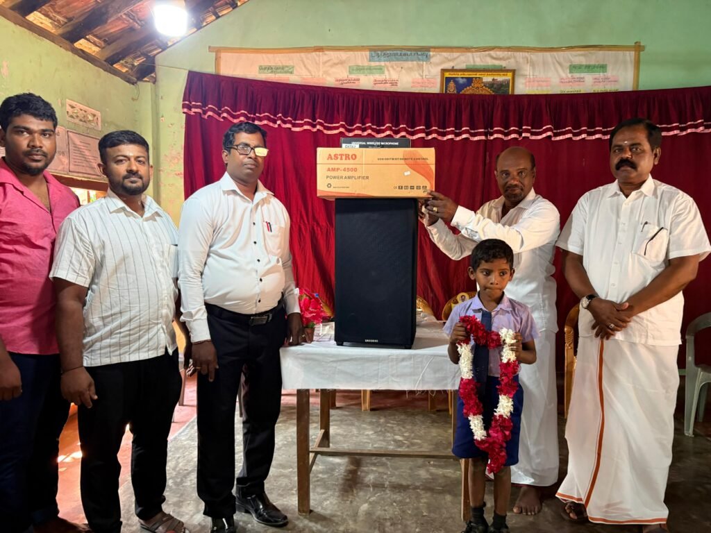 கனடா, மொன்றியல் வாழ் தமிழ் தேசியத்திற்கான வேர்கள் அமையத்தின் நிதி அனுசரணையில், இலங்கைத் தமிழ் அரசுக் கட்சியின் நாடாளுமன்ற உறுப்பினர் சிவஞானம் சிறீதரன் அவர்களினால் குறித்த ஒலியமைப்புச் சாதனங்கள் வழங்கிவைக்கப்பட்டன.
